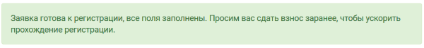 • заявка полностью готова, взнос сдан;