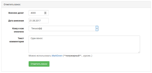 Как отметить факт сдачи взноса¶